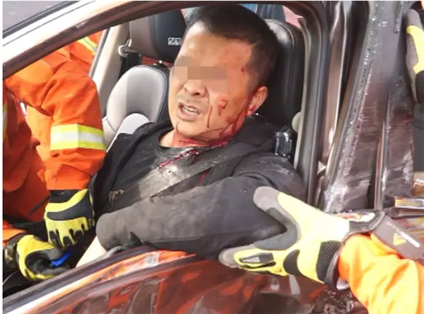 轿车司机被困于驾驶室内无法脱困